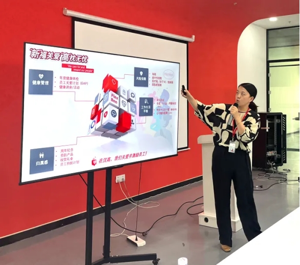 人力资源部经理高洁为同学们全面讲解了汉高人才管理战略,汉高在人才吸引、人才评估和发展、人才加速和人才保留方面推行了多种活动和项目,同时建立了系统性、数字化与可持续的人才管理系统。展现了汉高为员工量身定制的职业发展路径与广阔的职业前景。人力资源部主管王晓全也为同学们分享了公司的福利政策和烟台市人才吸引政策,以及丰富多彩的团建活动。让同学们对未来职业生涯的规划有了更加清晰的定义。