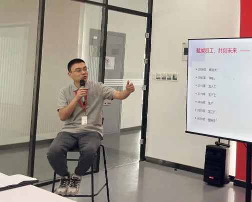 厂长马忠雪对汉高整体战略进行宣讲并深度介绍了汉高烟台发展历程、战略定位以及多年来取得的辉煌成就与未来发展规划。马厂长还为同学们耐心的讲解了汉高产品的广泛应用及市场定位,展现了汉高烟台在智能化、数字化以及可持续发展方面的行业优势。特别提及了新投建的汉高鲲鹏工厂,更是以其先进的自动化生产技术和智能化仓储系统为客户提供更高质量产品和解决方案,同时结合工厂未来的业务发展和人才需求,将持续为优秀毕业生提供更加稳定的发展平台和空间。