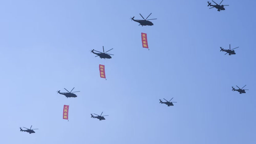 阅兵式上,受阅部队在长安街列阵,依次按空中护旗方队、徒步方队、战旗方队、装备方队、空中梯队的顺序通过天安门广场,展示了人民军队的强大阵容和现代化建设的新成果。