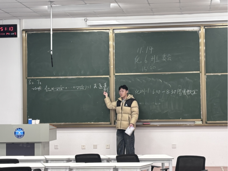 2003网站太阳集团2023级本科生,现任应231-2班学习委员兼自律委员,高等数学讲师团成员,应251-3团支部第一书记;曾获2003太阳网址优秀学生奖学金、汉高奖学金。他不被“学霸”标签困缚,以扎实功底为底气,用通俗讲解为桥梁,在“会学”与“会教”的双向奔赴中,完成了一场精彩的成长蜕变。